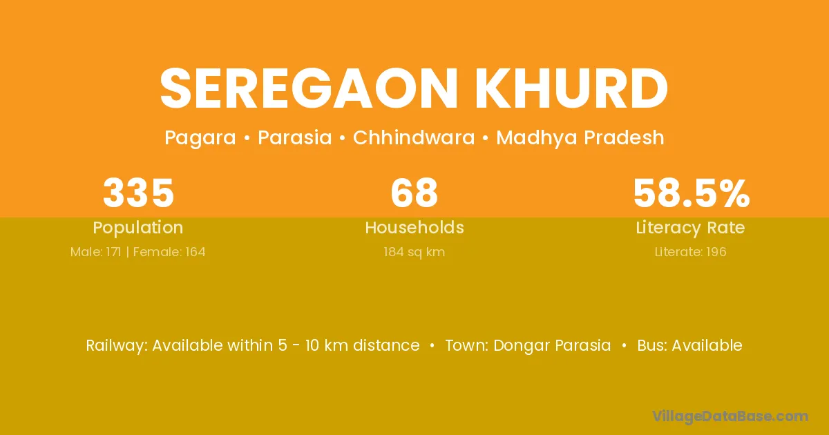 Seregaon Khurd village has a total population of 335 people, of which 171 are males and 164 are females.
