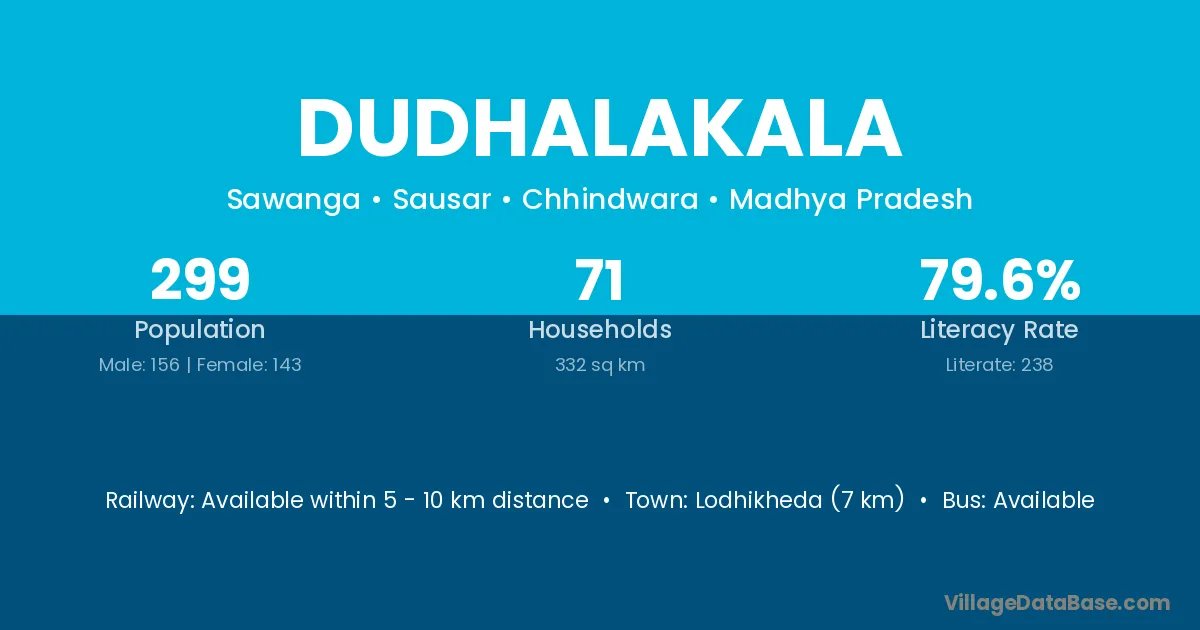 Lodhikheda (7 km) is the nearest town to Dudhalakala village for major economic activities and is located approximately 7 km away.