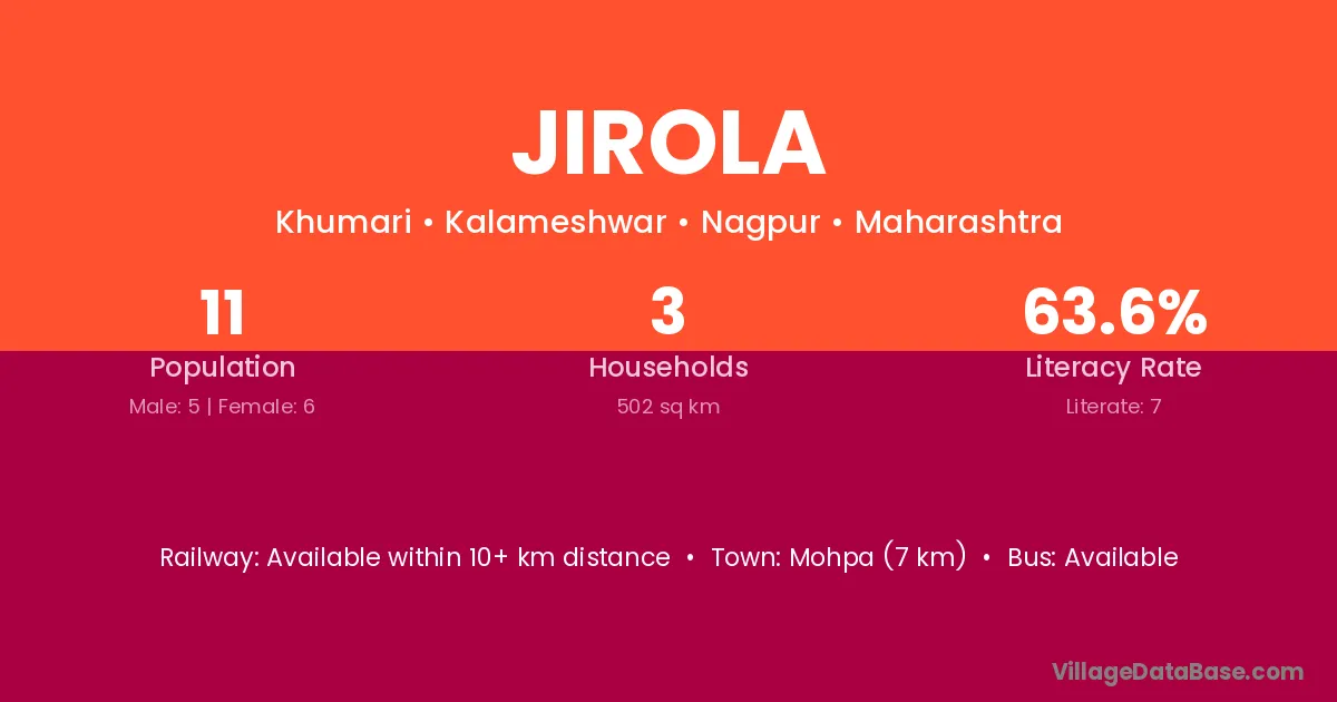 Sausar (19 km) is the nearest town to Jirola village for major economic activities and is located approximately 19 km away.