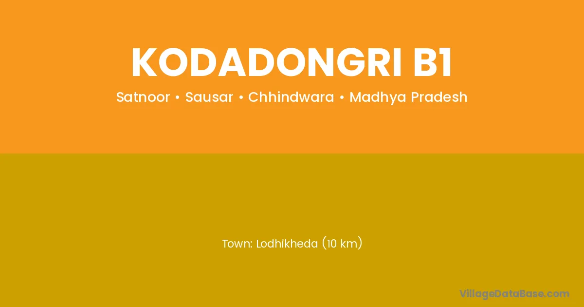 Lodhikheda (10 km) is the nearest town to Kodadongri B1 village for major economic activities and is located approximately 10 km away.