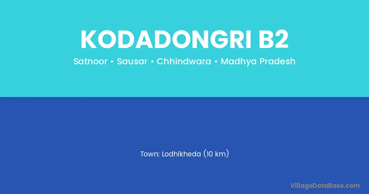 Lodhikheda (10 km) is the nearest town to Kodadongri B2 village for major economic activities and is located approximately 10 km away.