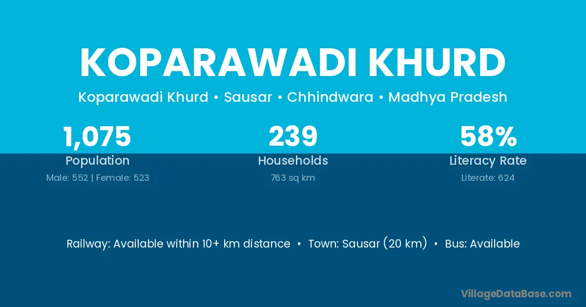 Koparawadi Khurd village has a total population of 1,075 people, of which 552 are males and 523 are females.
