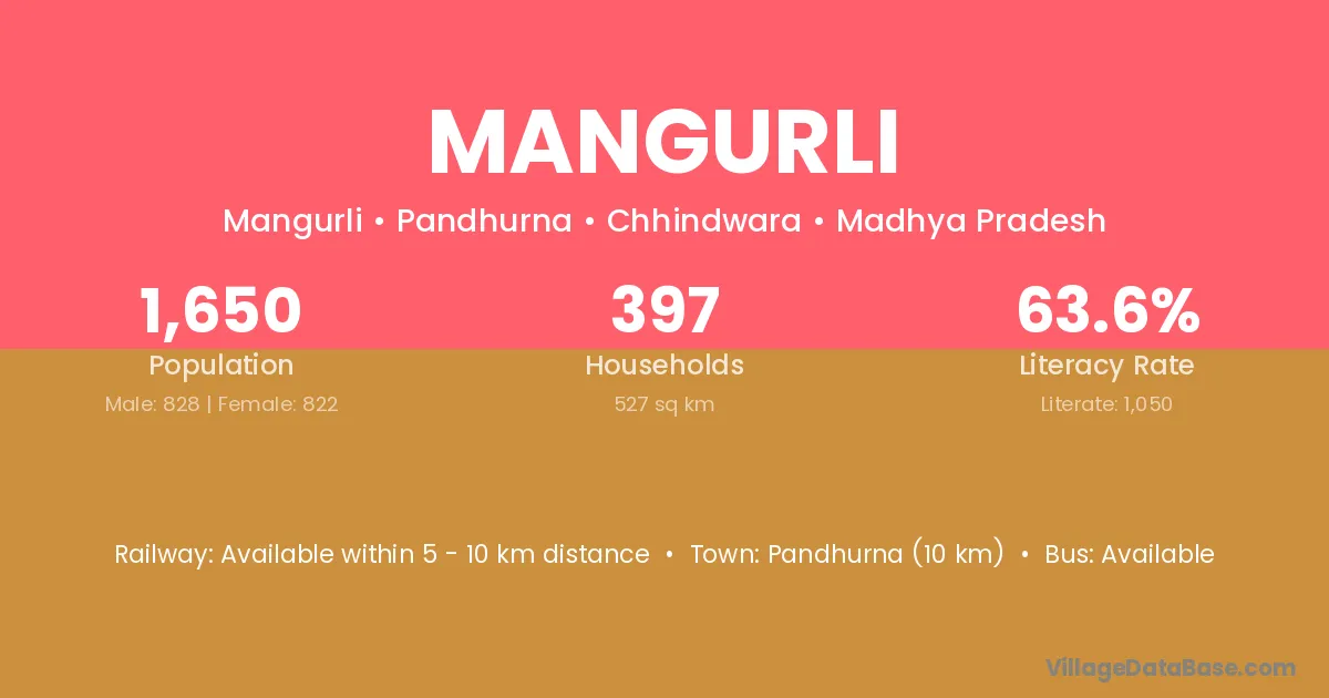 The literacy rate of Mangurli village is 64.86%. Male literacy stands at 66.83% and female literacy at 62.70%.