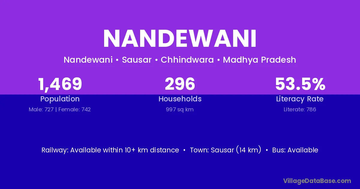 Sausar (14 km) is the nearest town to Nandewani village for major economic activities and is located approximately 14 km away.
