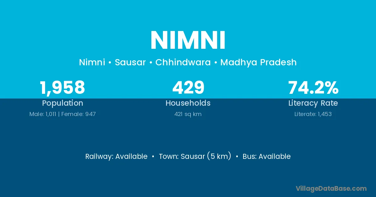Sausar (5 km) is the nearest town to Nimni village for major economic activities and is located approximately 5 km away.