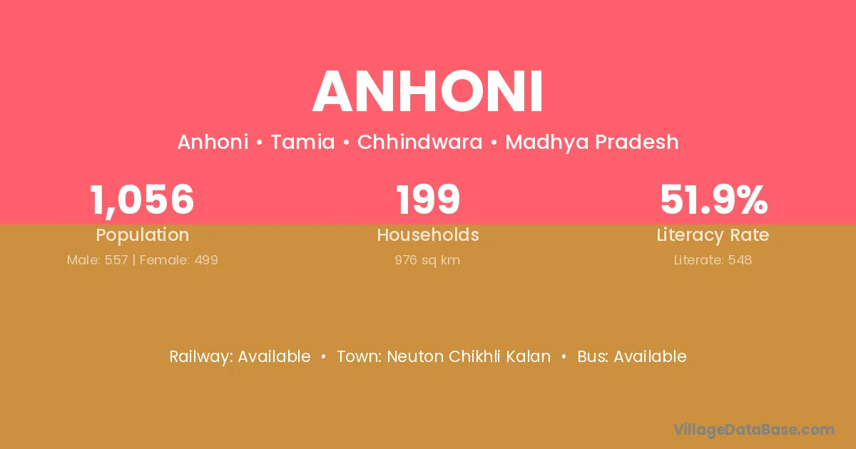 Anhoni village has a total population of 1,056 people, of which 557 are males and 499 are females.