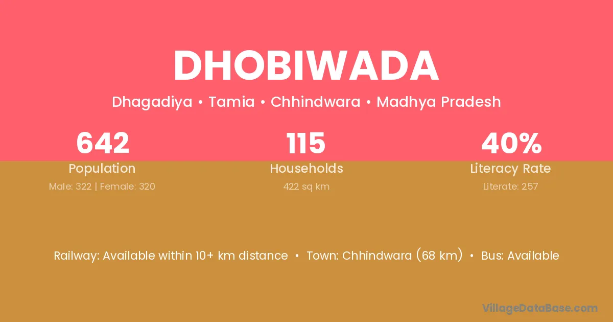 Chhindwara (68 km) is the nearest town to Dhobiwada village for major economic activities and is located approximately 68 km away.