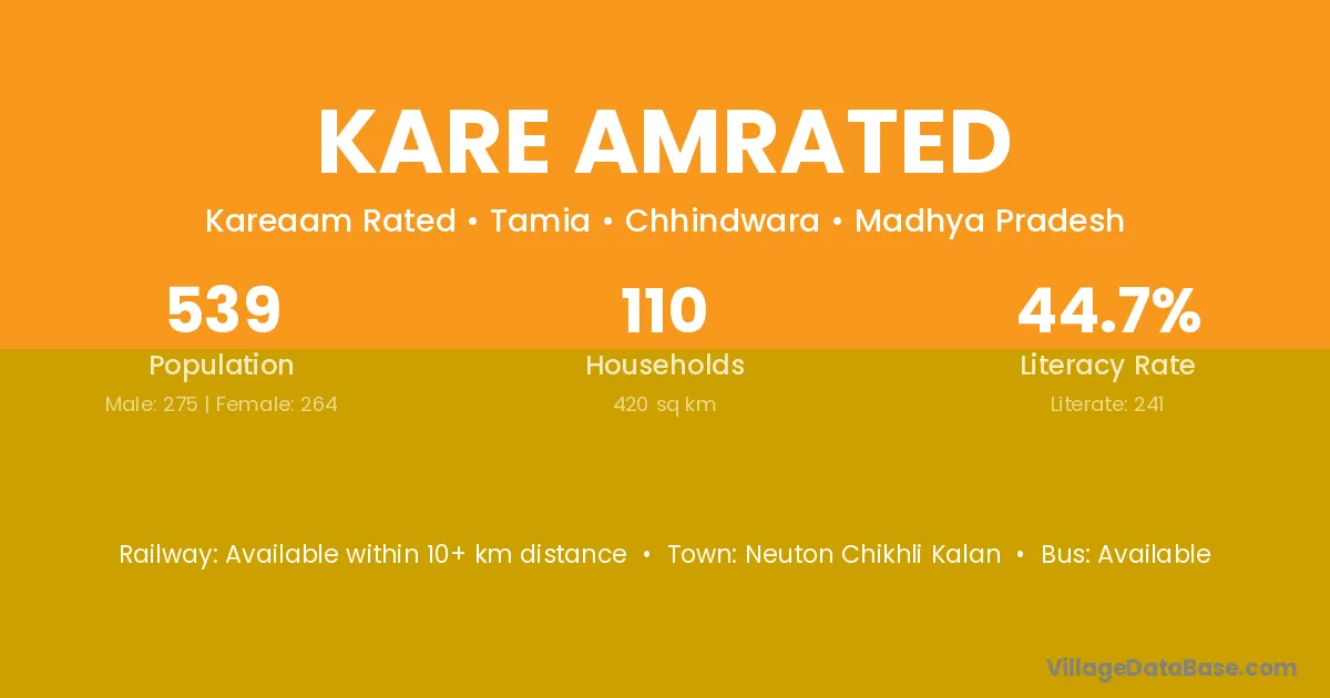 Kare Amrated village has a total population of 539 people, of which 275 are males and 264 are females.
