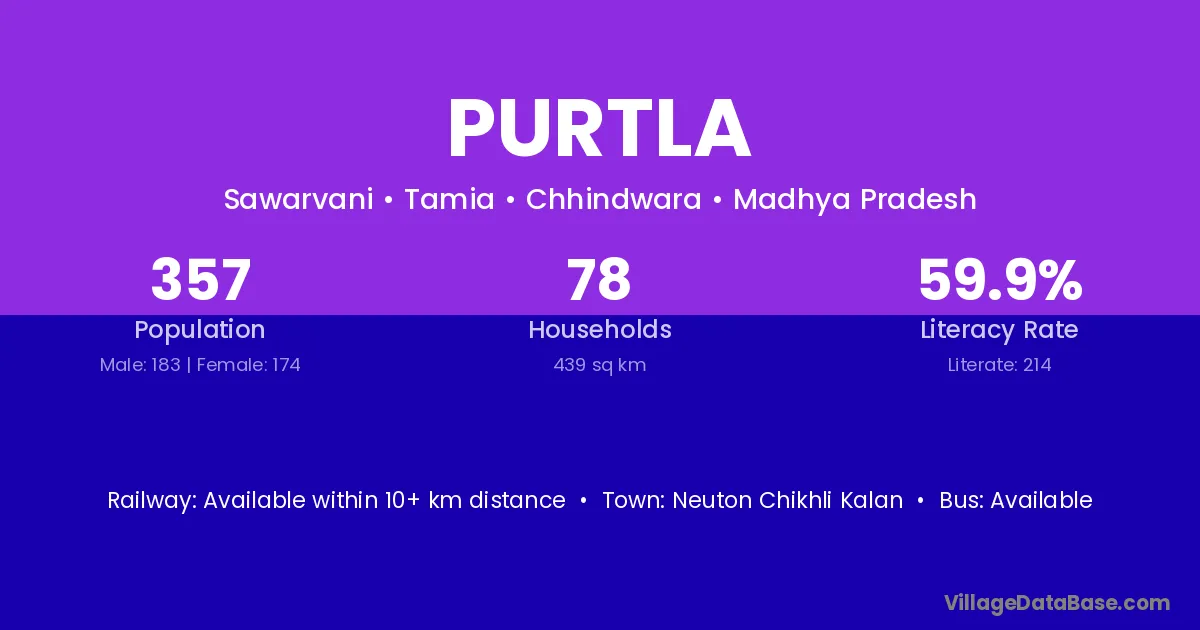 Neuton Chikhli Kalan is the nearest town to Purtla village for major economic activities