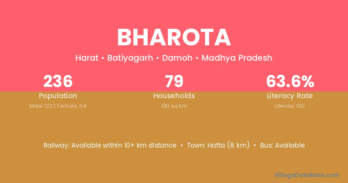 Hatta (8 km) is the nearest town to Bharota village for major economic activities and is located approximately 8 km away.