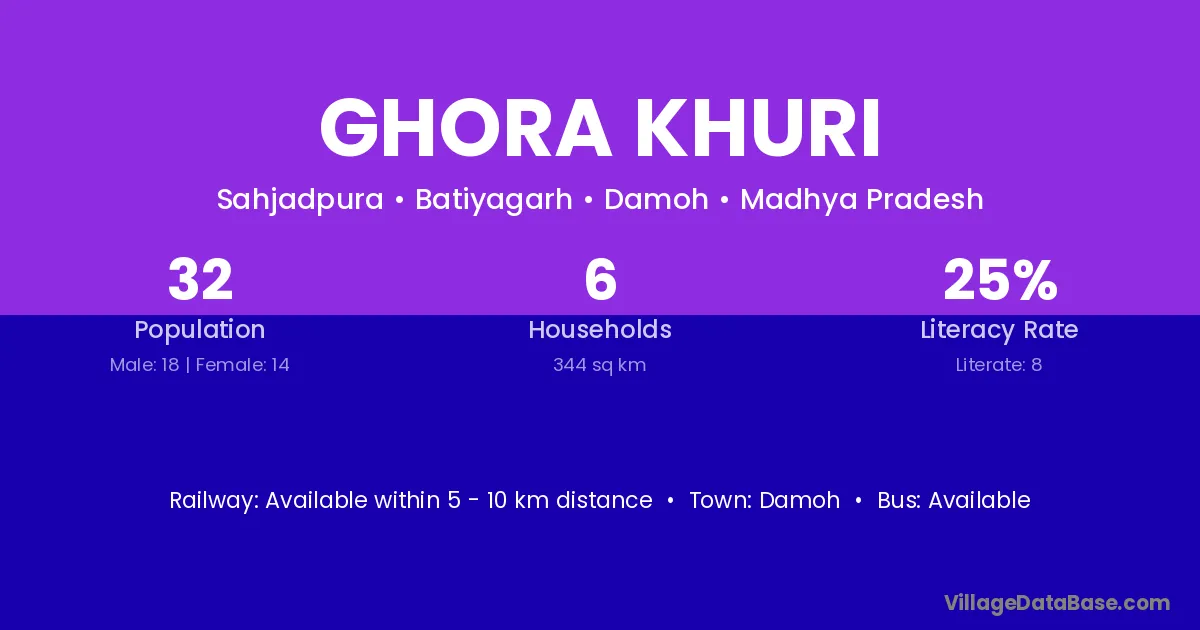 Damoh is the nearest town to Ghora Khuri village for major economic activities
