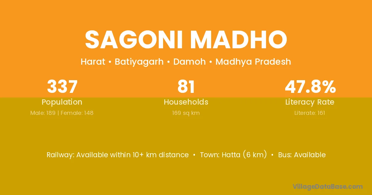 Hatta (6 km) is the nearest town to Sagoni Madho village for major economic activities and is located approximately 6 km away.