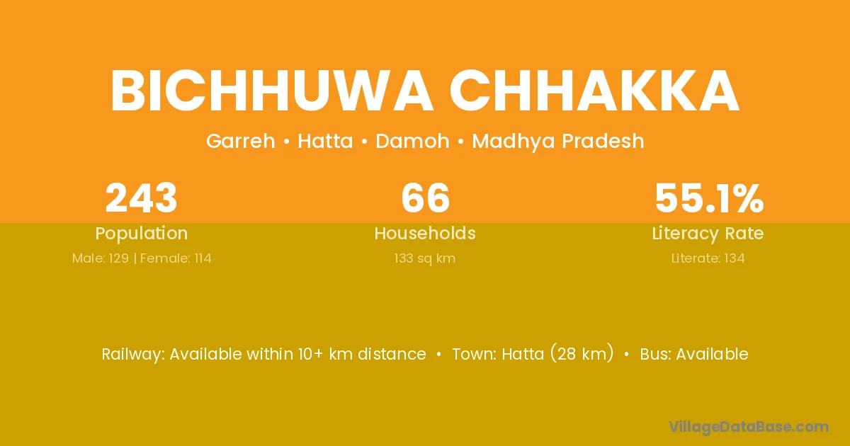 Bichhuwa Chhakka village has a total population of 243 people, of which 129 are males and 114 are females.