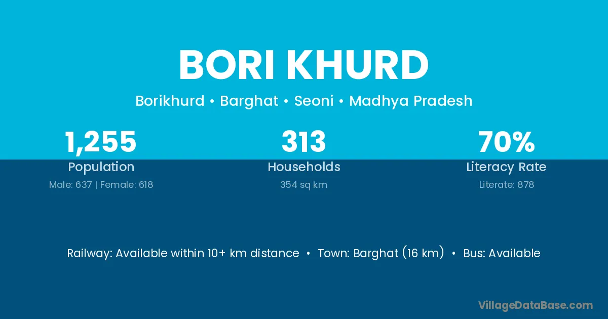 Hatta (2 km) is the nearest town to Bori Khurd village for major economic activities and is located approximately 2 km away.