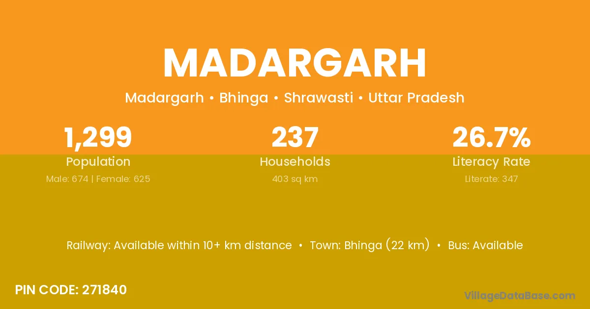 Hatta (26 km) is the nearest town to Madargarh village for major economic activities and is located approximately 26 km away.