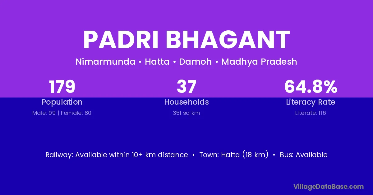 Hatta (18 km) is the nearest town to Padri Bhagant village for major economic activities and is located approximately 18 km away.