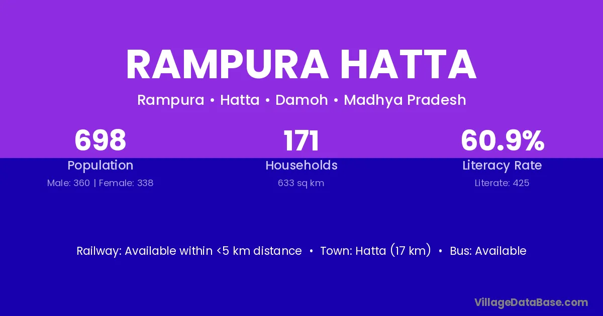 Rampura Hatta village has a total population of 698 people, of which 360 are males and 338 are females.