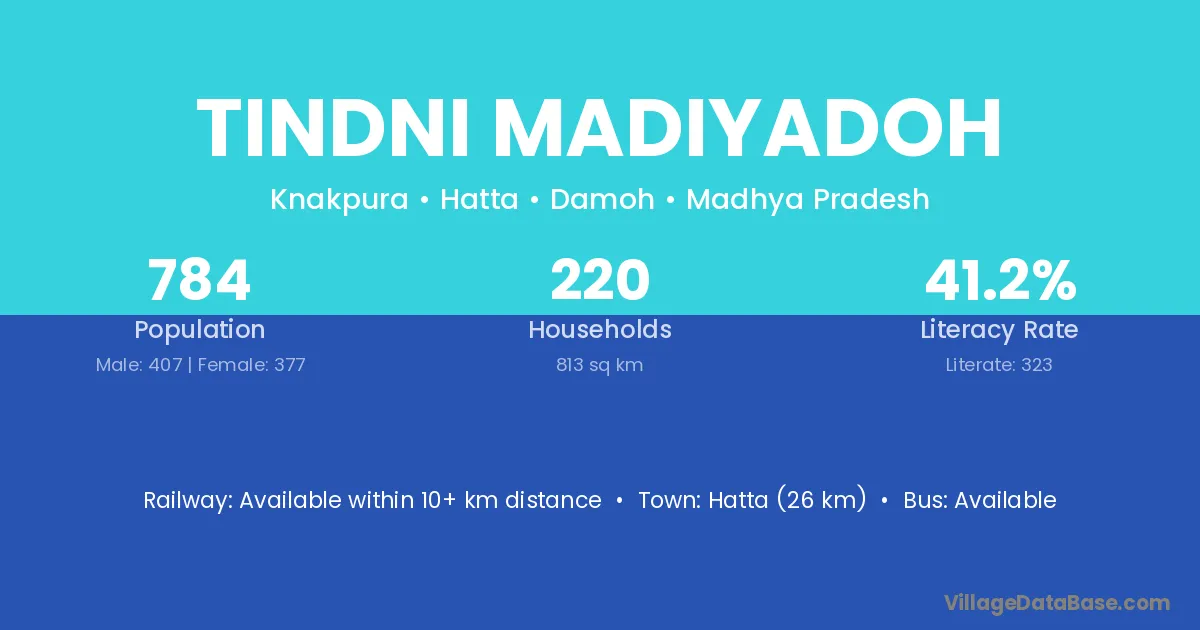 Tindni Madiyadoh village has a total population of 784 people, of which 407 are males and 377 are females.