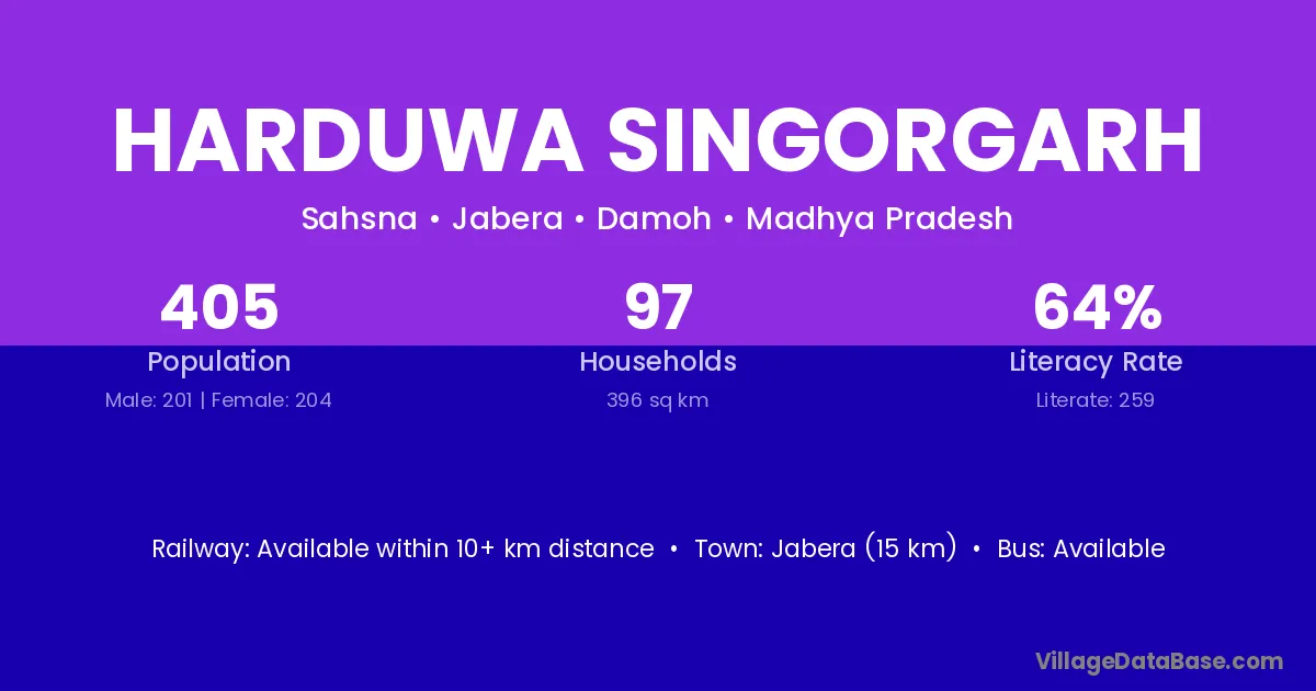 Jabera (15 km) is the nearest town to Harduwa Singorgarh village for major economic activities and is located approximately 15 km away.