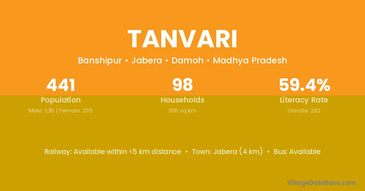 Jabera (4 km) is the nearest town to Tanvari village for major economic activities and is located approximately 4 km away.