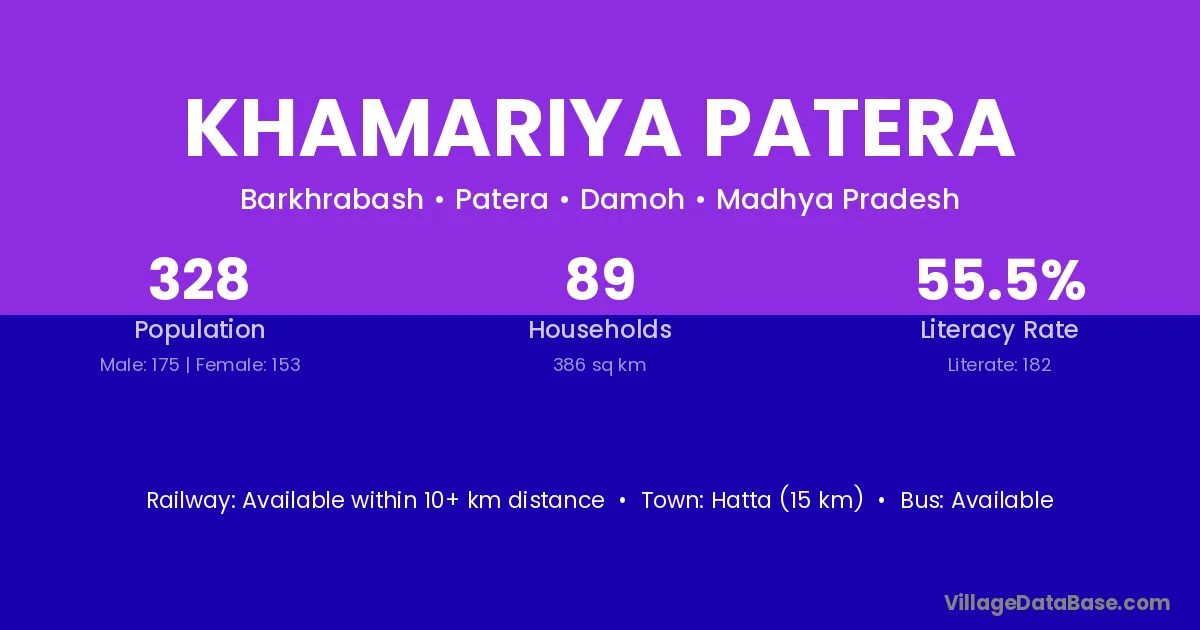 Hatta (15 km) is the nearest town to Khamariya Patera village for major economic activities and is located approximately 15 km away.
