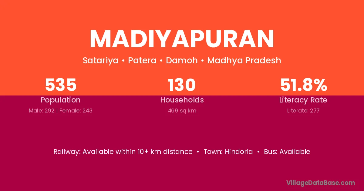 Hindoria is the nearest town to Madiyapuran village for major economic activities