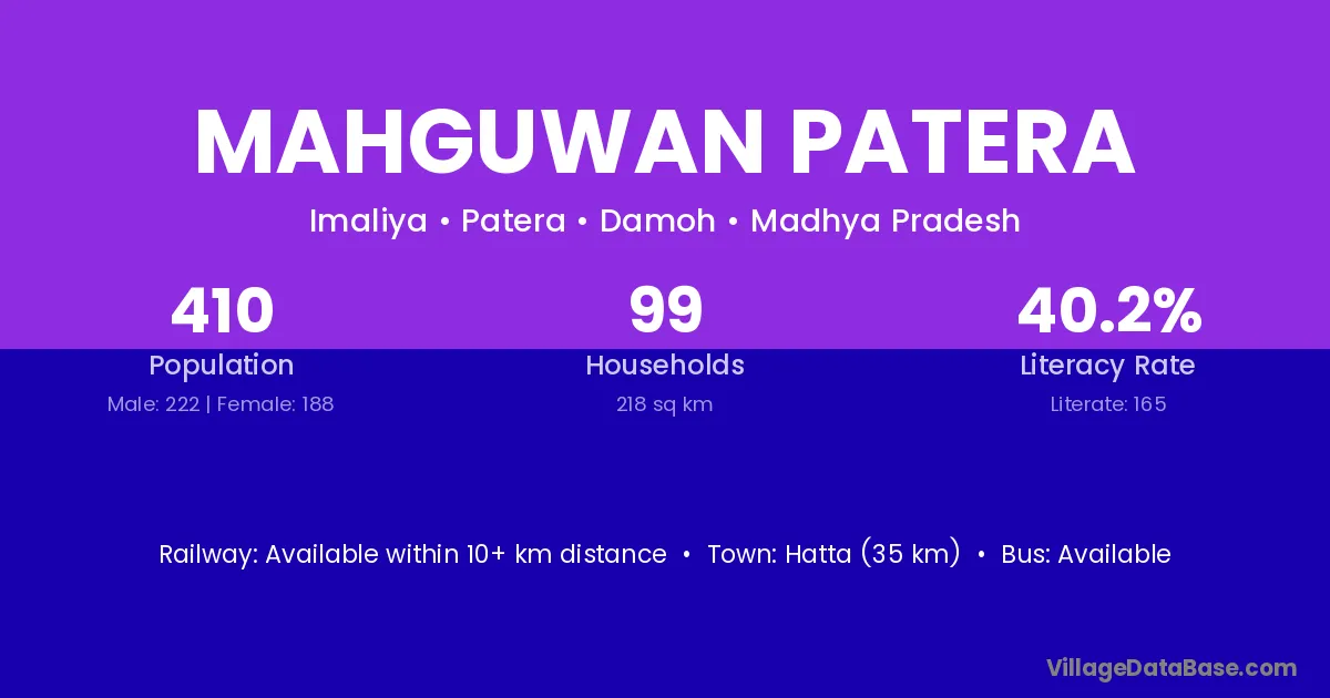 Mahguwan Patera village has a total population of 410 people, of which 222 are males and 188 are females.