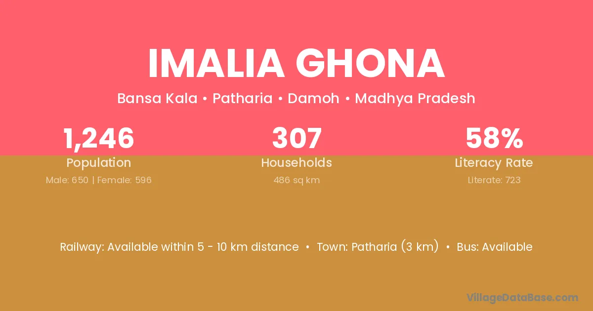 Patharia (3 km) is the nearest town to Imalia Ghona village for major economic activities and is located approximately 3 km away.