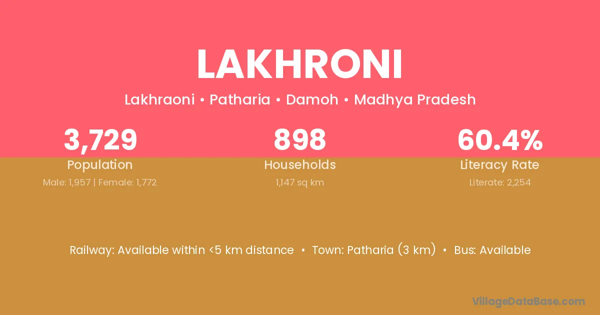 Patharia (3 km) is the nearest town to Lakhroni village for major economic activities and is located approximately 3 km away.