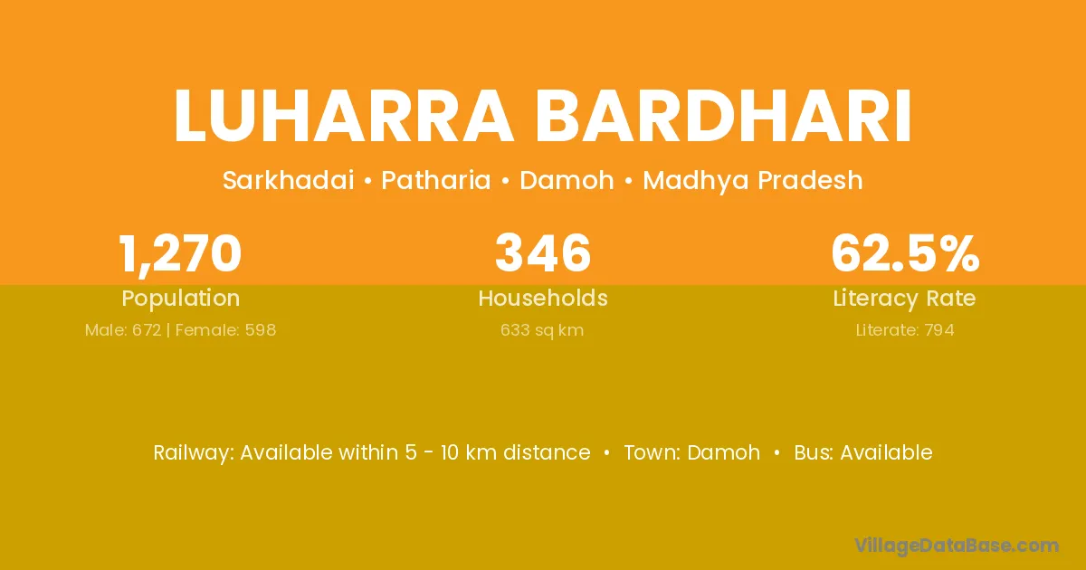 Luharra Bardhari village has a total population of 1,270 people, of which 672 are males and 598 are females.