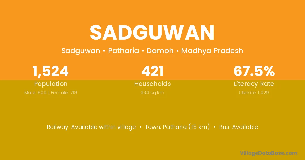 Patharia (15 km) is the nearest town to Sadguwan village for major economic activities and is located approximately 15 km away.