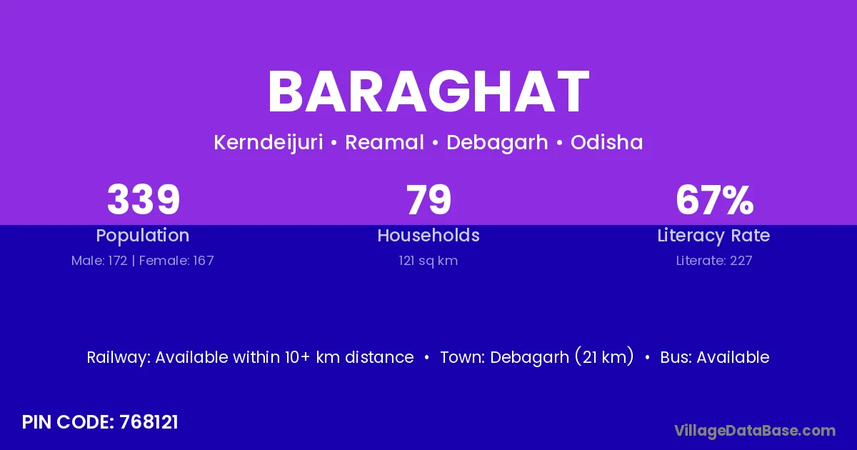 Baraghat village has a total population of 364 people, of which 189 are males and 175 are females.
