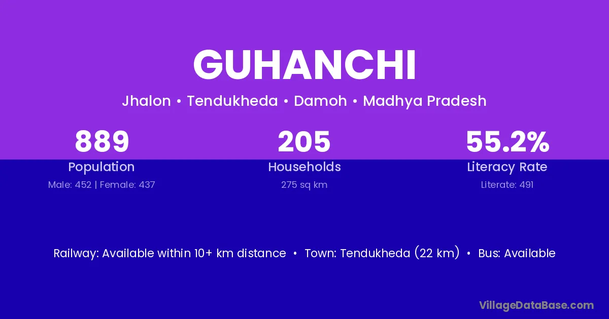 Guhanchi village has a total population of 889 people, of which 452 are males and 437 are females.