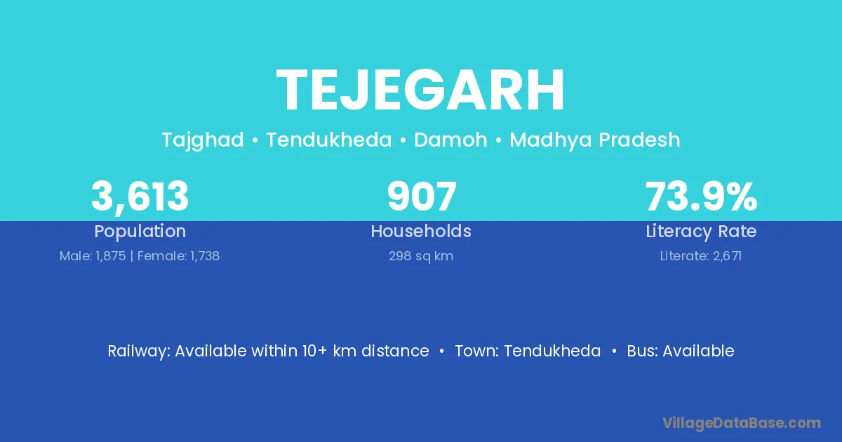 Tendukheda is the nearest town to Tejegarh village for major economic activities