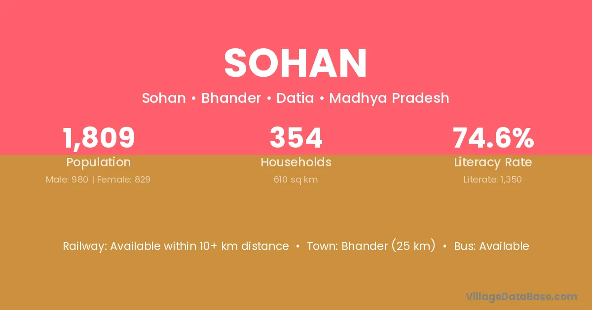 Bhander (25 km) is the nearest town to Sohan village for major economic activities and is located approximately 25 km away.