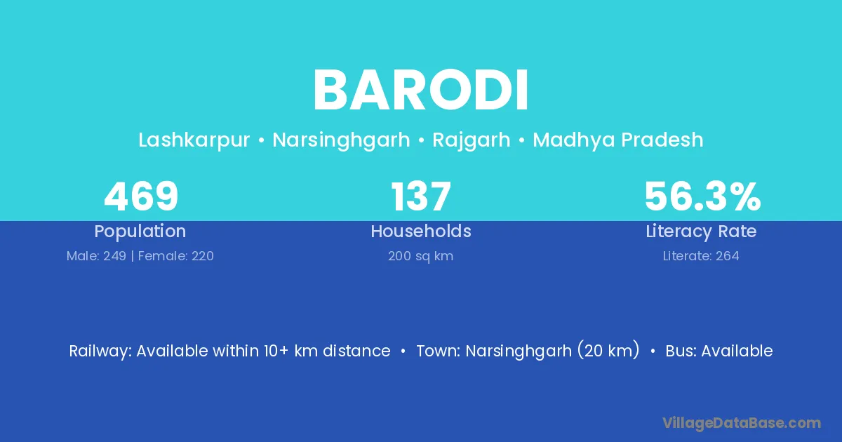 Datia (23 km) is the nearest town to Barodi village for major economic activities and is located approximately 23 km away.