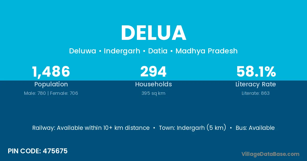 Indergarh (5 km) is the nearest town to Delua village for major economic activities and is located approximately 5 km away.