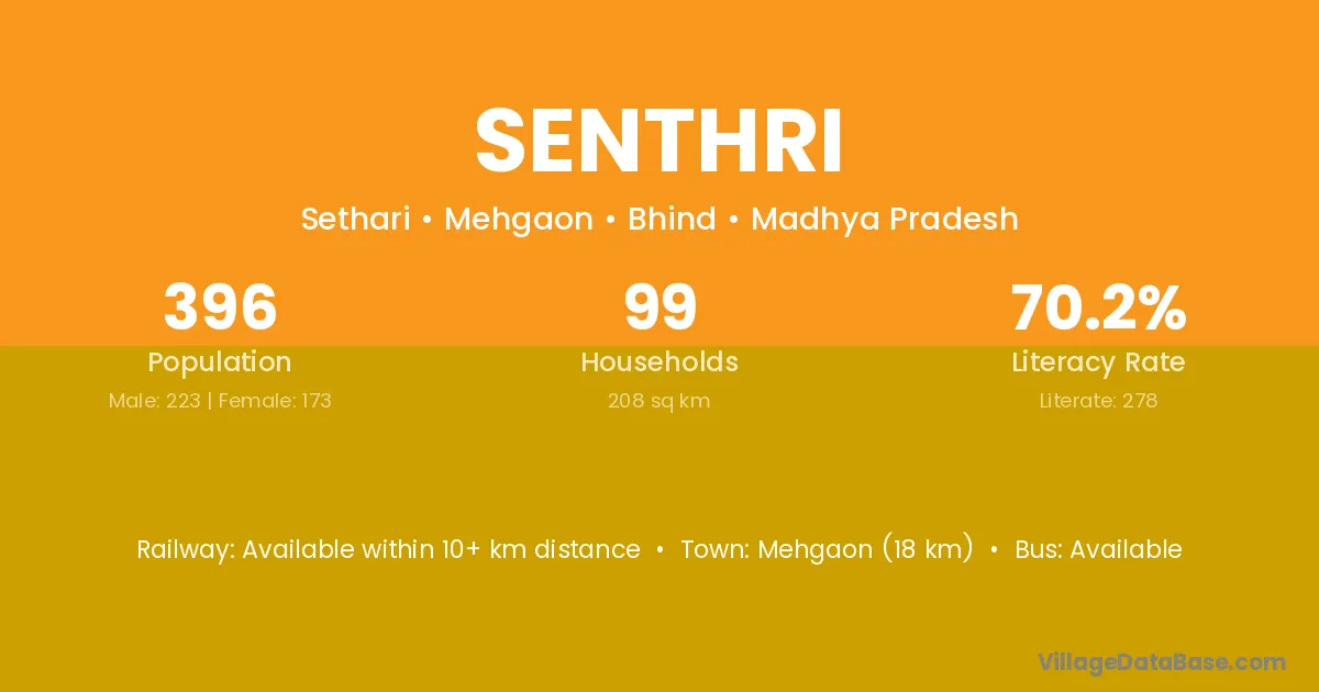 Indergarh (9 km) is the nearest town to Senthri village for major economic activities and is located approximately 9 km away.