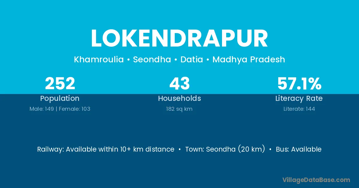Seondha (20 km) is the nearest town to Lokendrapur village for major economic activities and is located approximately 20 km away.