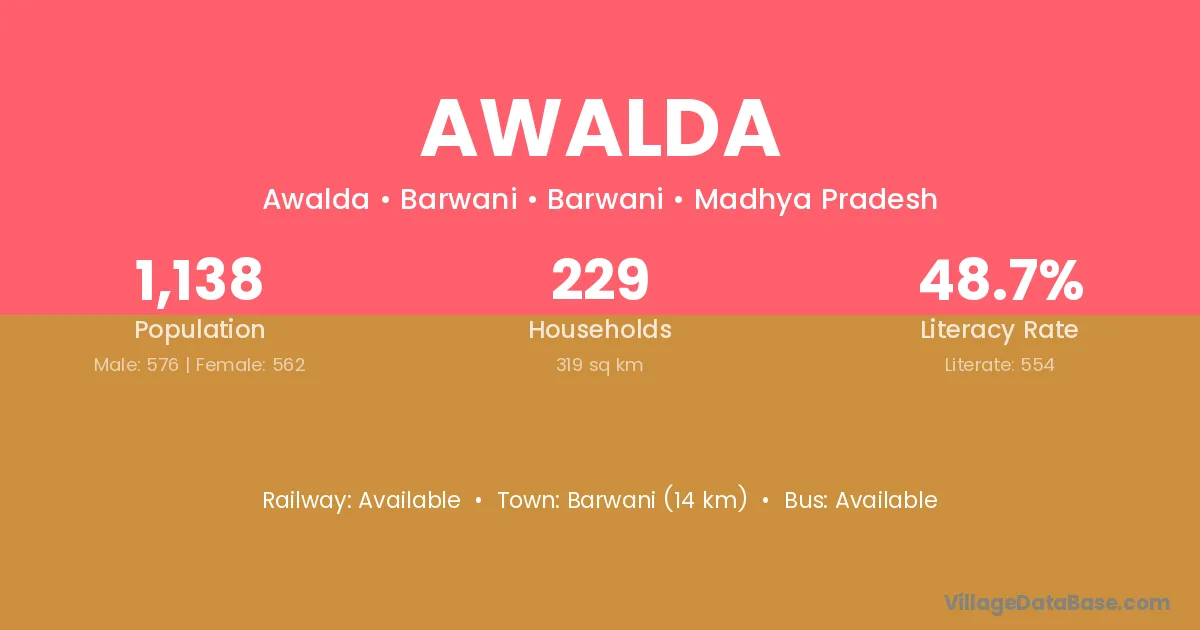 Bagli (9 km) is the nearest town to Awalda village for major economic activities and is located approximately 9 km away.