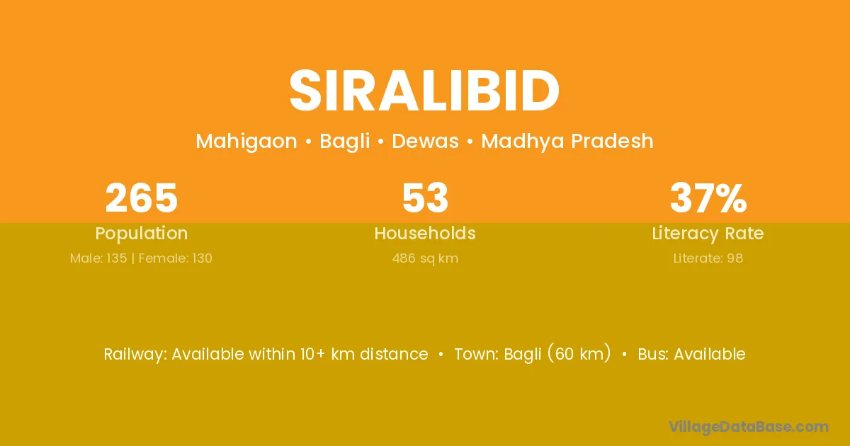 Siralibid village has a total population of 265 people, of which 135 are males and 130 are females.