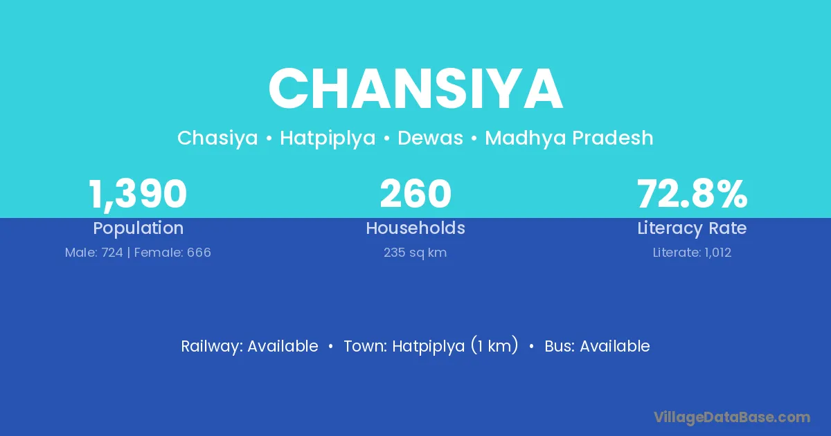 Chansiya village is located in the Hatpiplya Tehsil of the Dewas district in Madhya Pradesh .