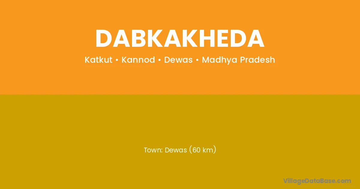Dewas (60 km) is the nearest town to Dabkakheda village for major economic activities and is located approximately 60 km away.