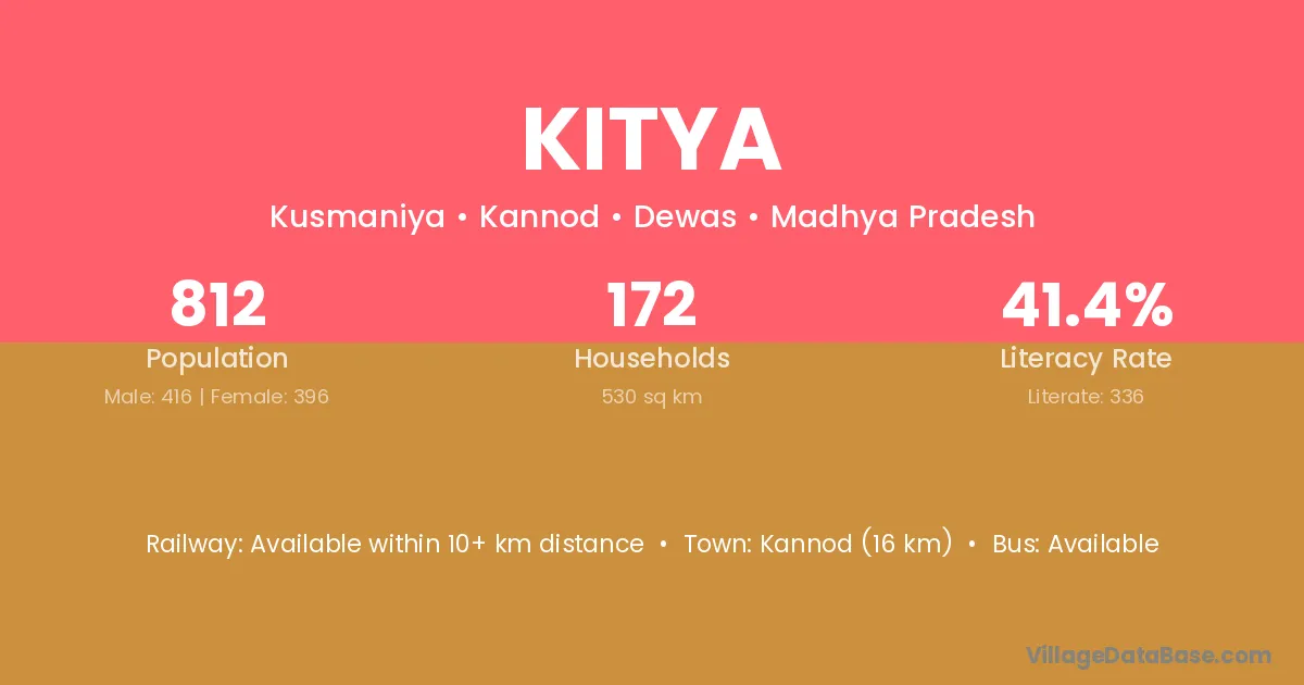 Kannod (16 km) is the nearest town to Kitya village for major economic activities and is located approximately 16 km away.