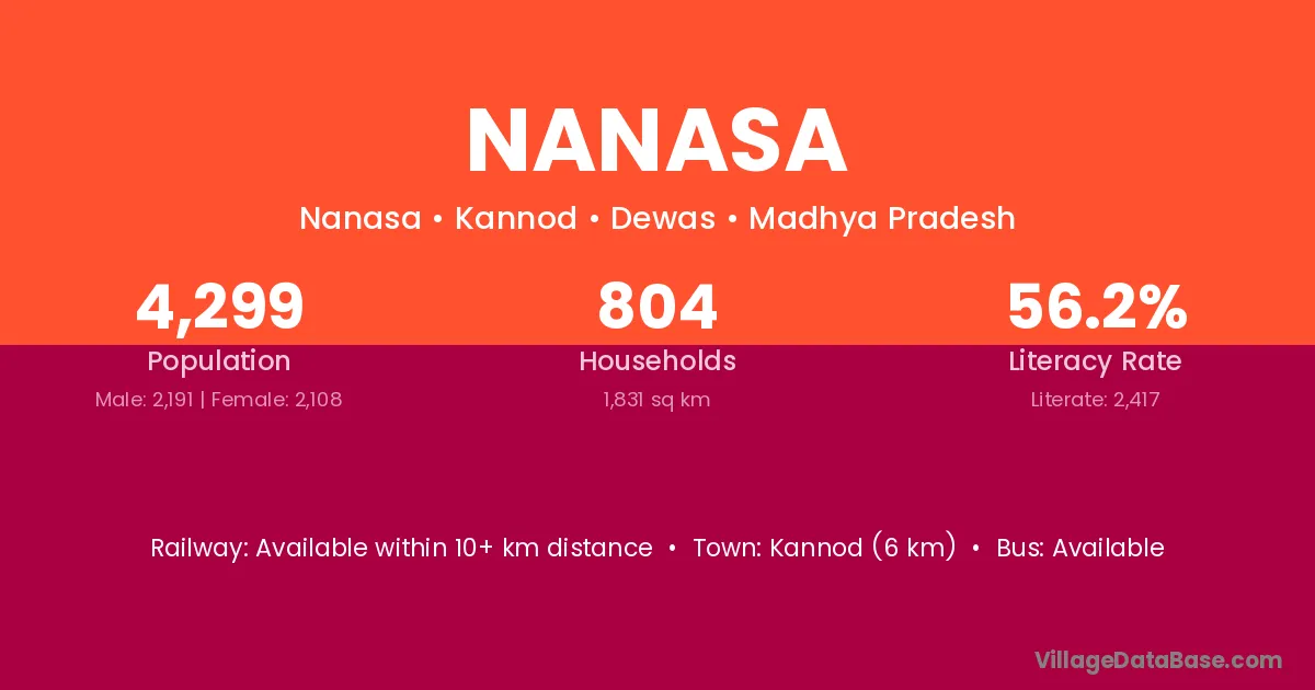 Kannod (6 km) is the nearest town to Nanasa village for major economic activities and is located approximately 6 km away.