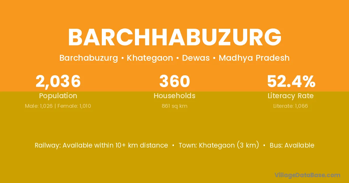 Khategaon (3 km) is the nearest town to Barchhabuzurg village for major economic activities and is located approximately 3 km away.