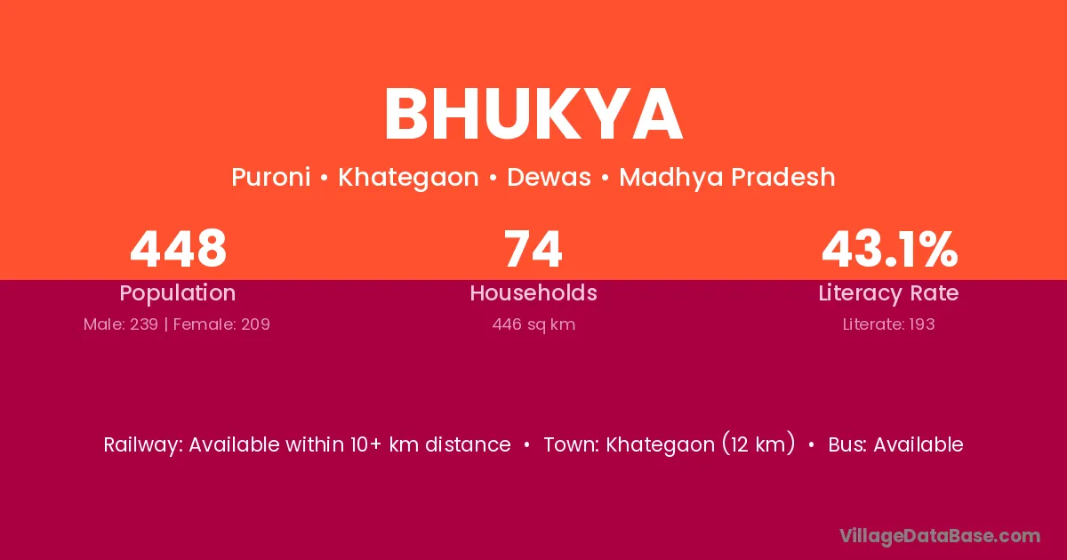Bhukya village has a total population of 448 people, of which 239 are males and 209 are females.