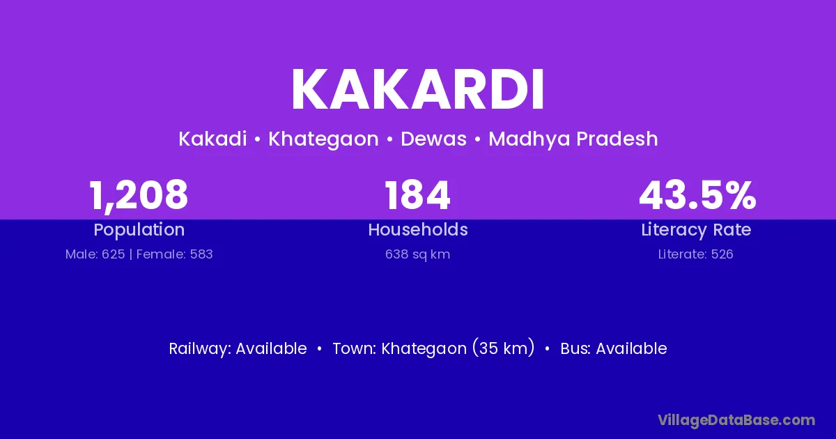 Kakardi village has a total population of 1,208 people, of which 625 are males and 583 are females.