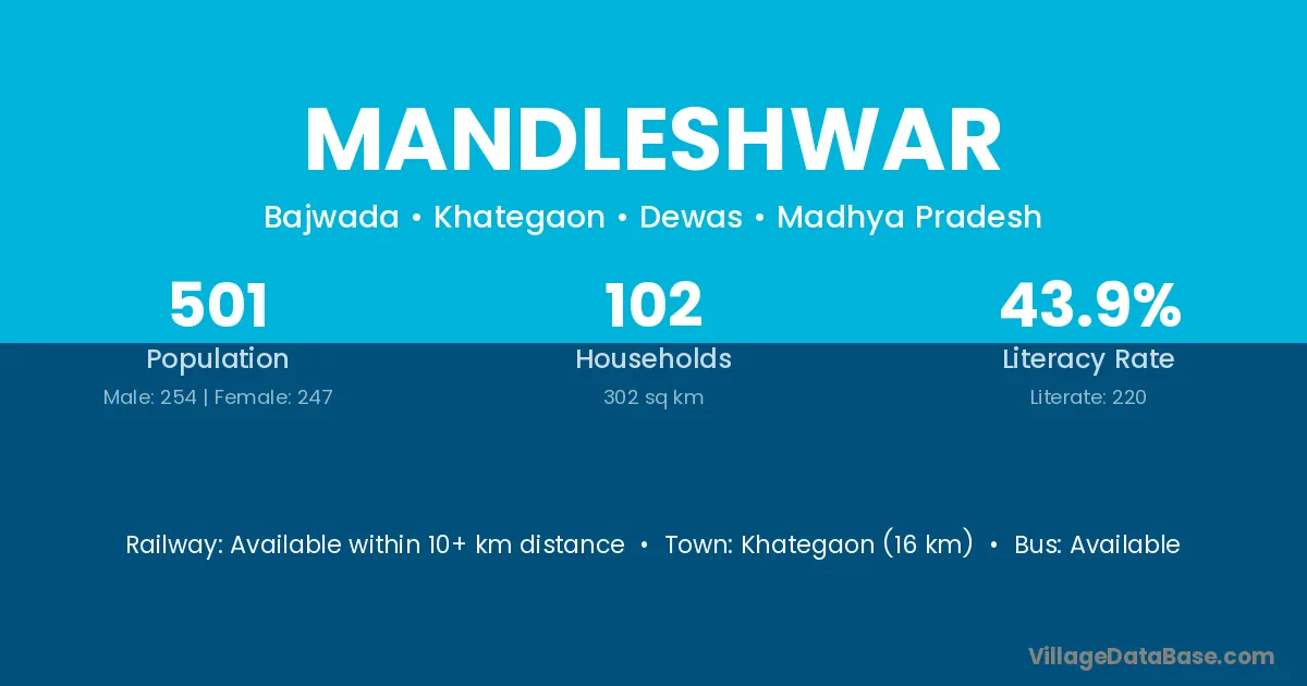 Mandleshwar village has a total population of 501 people, of which 254 are males and 247 are females.