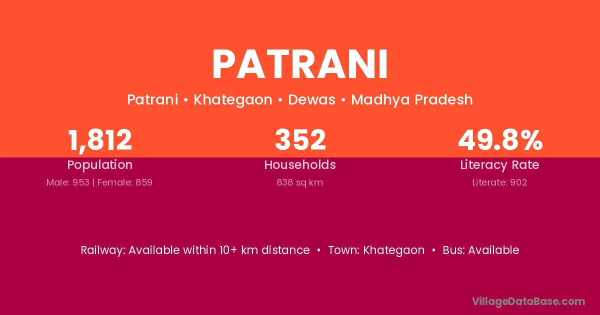 Patrani village is located in the Khategaon Tehsil of the Dewas district in Madhya Pradesh .